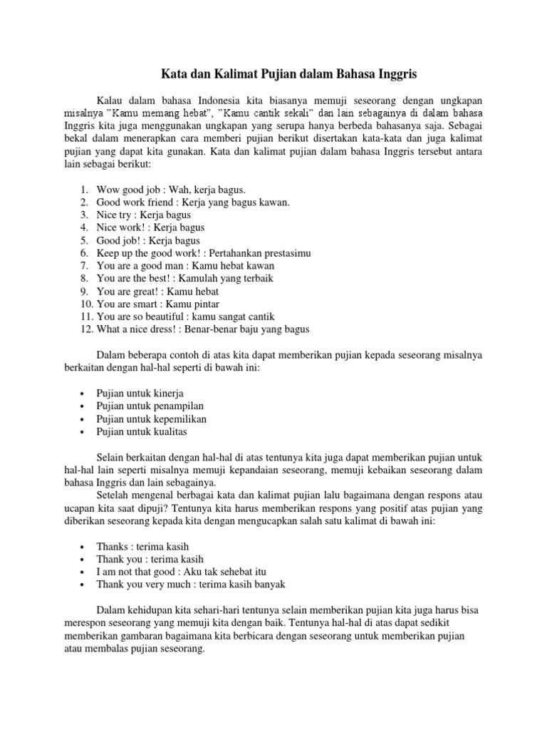 What we want to do learn later ? Yuk langsung kita agar referensi anda akan contoh kalimat pujian dalam bahasa inggris, artikel bagian 2 dari contoh. Cindy tidak akan dihukum jika datang tepat waktu. Berikut pengertian, jenis, dan contoh kalimat majemuk: Memulai usaha atau bisnis bukan hal yang mudah, perlu strategi jitu dalam pemasaran produk termasuk teknik beriklan agar kita.
